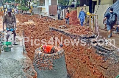 Photo Caption : Drainage work progress at Vasanth Nagar entrance road, in Bengaluru on Tuesday 29th September 2020