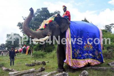 DC Mysuru Rohini Sindhuri and others during Gajapayana the journey of first batch of Dasara elephants from their respective forest camps to Mysuru city, from Veeranahosahalli Gate on the outskirts of Nagarahole Reserve Forest at Hunsur taluk, in Mysuru on Thursday 1st October 2020