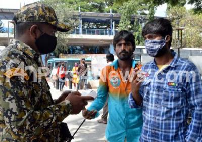 Photo Caption : BBMP Ward Marshals impose fine on public who werent wearing masks at Majestic area, in Bengaluru on Thursday 1st October 2020