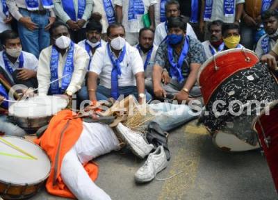 Photo Caption : Members of Dalit associations stage protest for various demands at SBM circle, in Bengaluru on Friday 2nd October 2020