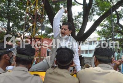 Event Description : Pro Kannada activists stage protest against UP rape case at SBM circle, in Bengaluru on Friday 2nd October 2020