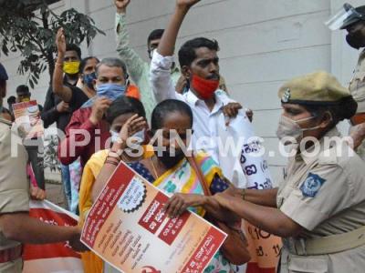 Event Description : Members of CPI taken away by police when they attempted to stage protest for various demands outside Raj Bhavan, in Bengaluru on Saturday 3rd October 2020