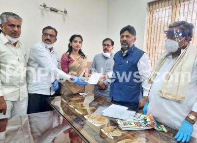 Photo Caption : Kusuma H wife of late IAS officer DK Ravi joined Congress Party in the presence of KPCC President DK Shivakumar and CLP leader Siddaramaiah and Dr. G Parameshwar at KPCC office, in Bengaluru on Sunday 4th October 2020