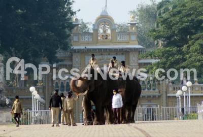 Dasara elephants seen taking a stroll around Mysuru Palace ahead of Dasara Festival, in Mysuru on Monday 5th October 2020
