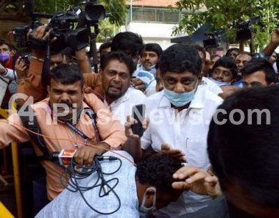 Photo Caption : MP DK Suresh arrives at DK Shivakumars Residence during CBI raid , in Bengaluru on Monday 5th October 2020