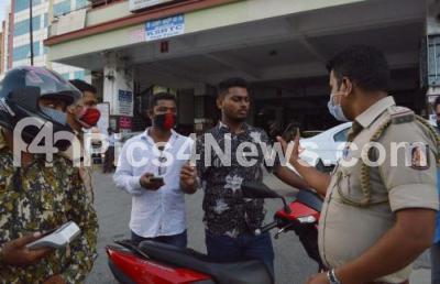 Photo Caption : Police along with BBMP marshals impose fines on people who arent wearing masks, in Bengaluru on Wednesday 7th October 2020