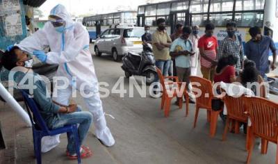 A health worker takes nasal swab samples from people for COVID-19, in Bengaluru on Friday 9th October 2020