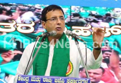 Photo Caption : Randeep Singh Surjewala, In Charge of Karnataka and AICC General Secretary addressing during "Raitha Dwani" (Farmer Voice) program to protest Central and State BJP government , in Mandya on Saturday 10th October 2020