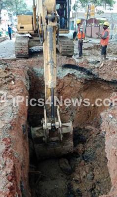 Drainage work in progress at Venkatachalam Circle, Ulsoor, in Bengaluru on Sunday 11th Ocotober 2020