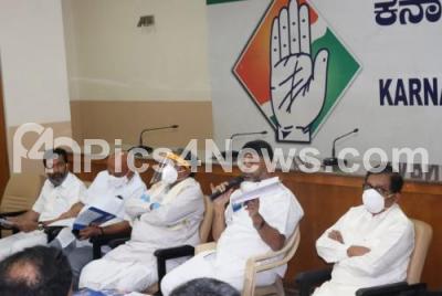 Photo Caption : KPCC President DK Shivakumar with CLP Leader Siddaramaiah, Congress Leader Dr G Prameshwara and others during a meeting on bye elections at KPCC office, in Bengaluru on Sunday 11th October 2020