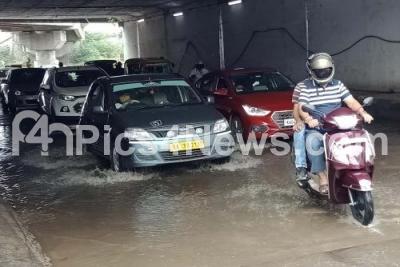 Photo Caption : Motorists passing through rain water logged underpass at Okalipuram junction, in Bengaluru on Sunday 11th October 2020