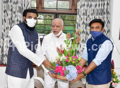 Photo Caption : Ministers D Sudhakar and Sriramulu called on CM BS Yediyurappa, in Bengaluru on Tuesday 13th October 2020