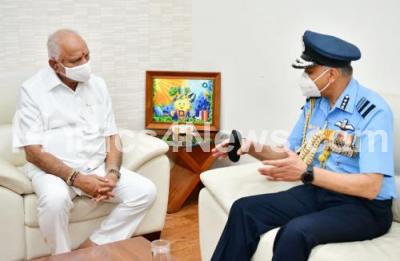 Air Marshal RD Mathur, the new head of the Indian Air Force Training Center in Bangalore called on Chief Minister of Karnataka BS Yediyurappa, in Bengaluru on Wednesday 14th October 2020