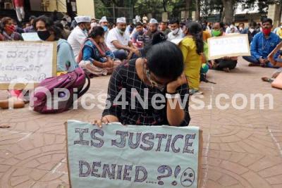 Pre University lecturers staged a protest over various demands including appointment orders which they have not received since one year, in Bengaluru on Friday 16th October 2020