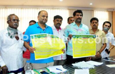Photo Caption : SM Krishna, State President, Karnataka State Licensed Electrical Contractors Association with N Suresh, Bangalore District President, V Sharathkumar, Bangalore District Secretary and others addressing a press conference regarding Karnataka State Licensed Electrical Contractors Association protest, in Bengaluru on Saturday 17th October 2020