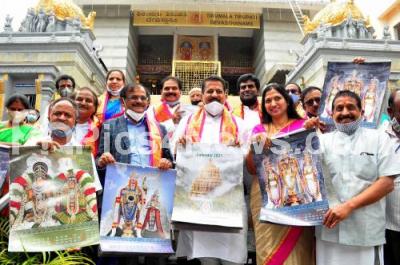 Photo Caption : Kupendra Reddy, Advisory Committee Chairman, Tirupati Tirumala Temple with MLA Vishwanath and others releasing 2021 Tirupati Tirumala calendar during TTD Advisory Committee board meeting, in Bengaluru on Sunday 18th October 2020