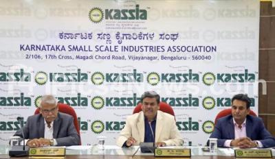Photo Caption : KB Arasappa, President, KASSIA addressing a press conference, also seen are PN Jaikumar, Joint Secretary, KASSIA and Shankaran, Treasurer, KASSIA, in Bengaluru on Tuesday 20th October 2020