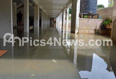 Photo Caption : Rainwater logged at an apartment at Koramangala due to last night heavy rainfall, in Bengaluru on Wednesday 21st October 2020