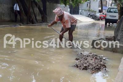 Rainwater logged at Koramangala due to last night heavy rainfall in the city, in Bengaluru on Wednesday 21st October 2020