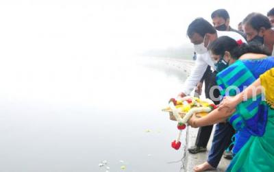Event Description : DCM Ashwath Narayan and his wife offered Bagina at Sankey Tank, in Bengaluru on Thursday 22nd October 2020