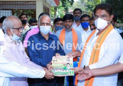 Event Description : Minister R Ashoka and BJP leaders campaigning for BJP candidate Muniratna at Rajarajeshawari Nagar assembly constituency for the Bye Election, in Bengaluru on Friday 23rd October 2020