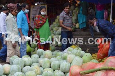 People shopping at KR Market on the eve of Ayudha Pooja and Vijayadashami festival, in Bengaluru on Friday 23rd October 2020