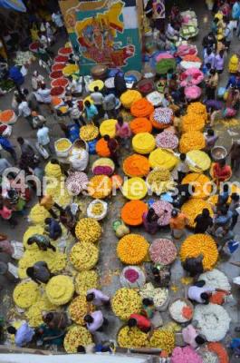 Photo Caption : People shopping at KR Market on the eve of Ayudha Pooja and Vijayadashami festival, in Bengaluru on Saturday 24th October 2020