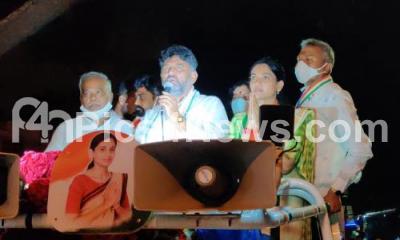 Photo Caption : KPCC President DK Shivakumar campaigning for Congress Candidate Kusuma at Rajarajeshwari Nagar assembly constituency bye election, in Bengaluru on Sunday 25th October 2020