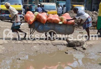 Potholes have been causing lot of problems to the motorists and the people at the busy Avenue Road, in Bengaluru on Monday 26th October 2020