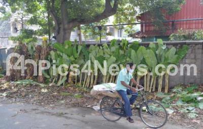 Photo Caption : Banana leaves and festival garbage being dumped at a road side at KR Market, in Bengaluru on Monday 26th October 2020
