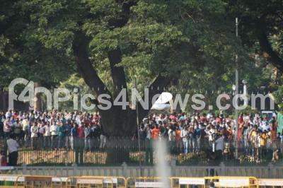 Photo Caption : Crowd watching the Jumbo Savari Annual Dasara Procession from the roadside, celebrating Mysuru Dasara 2020 Festival, in Mysuru on Monday 26th October 2020