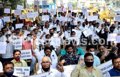 Photo Caption : Members of Karnataka Photographers Association staged a protest to fulfill their various demands at Maurya Circle, in Bengaluru on Saturday 31st October 2020