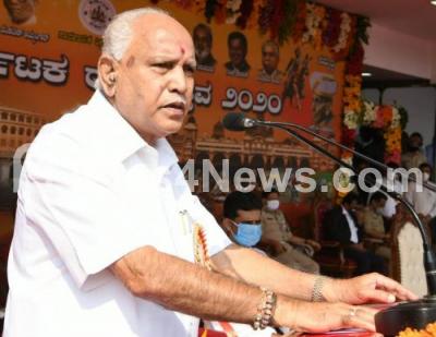 Chief Minister of Karnataka BS Yediyurappa addressing during Kannada Rajyotsava celebrations at Kanteerava Stadium, in Bengaluru on Sunday 1st November 2020