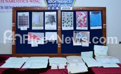 Photo Caption : Bengaluru Police Commissioner Kamal Pant and police officials inspect the seized drugs worth 90 Lakhs during a press conference at Police Commissioner office, in Bengaluru on Monday 2nd November 2020