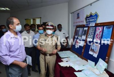 Photo Caption : Bengaluru Police Commissioner Kamal Pant and police officials inspect the seized drugs worth 90 Lakhs during a press conference at Police Commissioner office, in Bengaluru on Monday 2nd November 2020