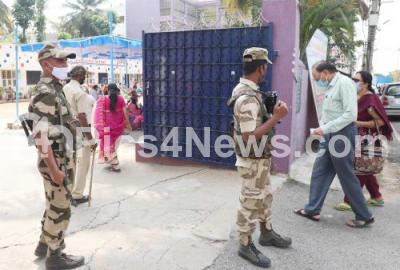 Tight security at Ullal voting centre during Rajarajeshwari Nagar bypoll, in Bengaluru on Tuesday 3rd November 2020
