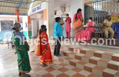 Photo Caption : People standing in the queue to cast their vote for the Rajarajeshwari Nagar bypoll, in Bengaluru on Tuesday 3rd November 2020