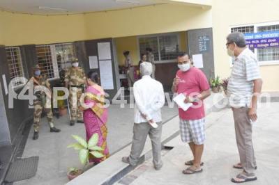 People standing in the queue to cast their vote for the Rajarajeshwari Nagar bypoll, in Bengaluru on Tuesday 3rd November 2020