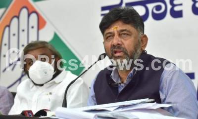Photo Caption : KPCC President DK Shivakumar addressing a press conference at KPCC, also seen is KPCC Working President Eshwar Khandre, in Bengaluru on Monday 9th November 2020