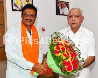 Photo Caption : Chief Minister of Karnataka BS Yediyurappa congratulated BJP Rajarajeshwari Candidate Munirathna after the Rajarajeshwari Nagar bypoll results, in Bengaluru on Tuesday 10th November 2020