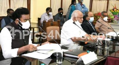 Photo Caption : Chief Minister BS Yediyurappa with Ministers Sriramulu, Maduswamy, MLAs, MPs and officials during a meeting on scheduled castes and scheduled tribes (Prevention of Atrocities) Act 1989 state level awareness and stewardship at Conference Hall, Vidhana Soudha, in Bengaluru on Wednesday 11th November 2020