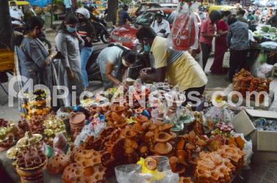 Event Description : People seen shopping colourful diyas and lanterns for the upcoming Diwali Festival at Gandhi Bazaar, in Bengaluru on Thursday 12th November 2020