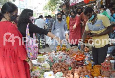People seen shopping colourful diyas and lanterns for the upcoming Diwali Festival at Gandhi Bazaar, in Bengaluru on Thursday 12th November 2020