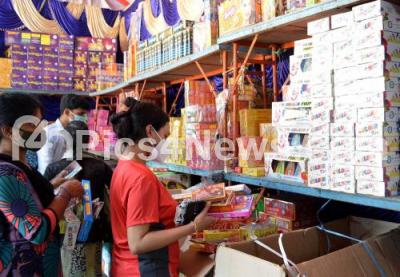 People shopping crackers at Wilson Garden on the occasion of Diwali Festival, in Bengaluru on Saturday 14th November 2020