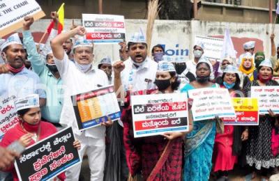 Members Aam Aadmi Party staged a protest against state government for hike of electricity bills, in Bengaluru on Thursday 19th November 2020