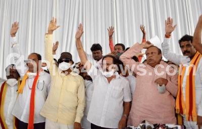 Kannada Activists Vatal Nagaraj, Sa Ra Govind, Mukhya Mantri Chandru and others during a press conference at a private hotel, in Bengaluru on Friday 20th November 2020