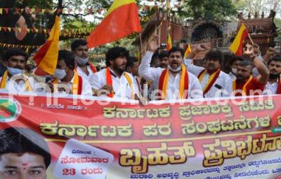 Kannada organisations staged a protest against the state government implementation of Maratha Development Board, in Bengaluru on Monday 23rd November 2020
