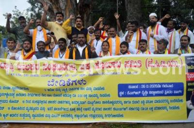 Photo Caption : Taxi and Cab drivers association protest to fulfill their various demands at Freedom Park, in Bengaluru on Thursday 26th November 2020