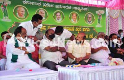 Photo Caption : JDS Leaders HD Kumarswamy, HK Kumarswamy, JDS State President, HD Revanna and others seen at JDS meeting, in Bengaluru on Saturday 28th November 2020
