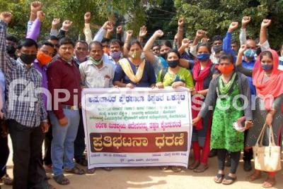 Photo Caption : Aided school teachers staged a protest to fulfill their various demands at Freedom Park, in Bengaluru on Monday 30th November 2020